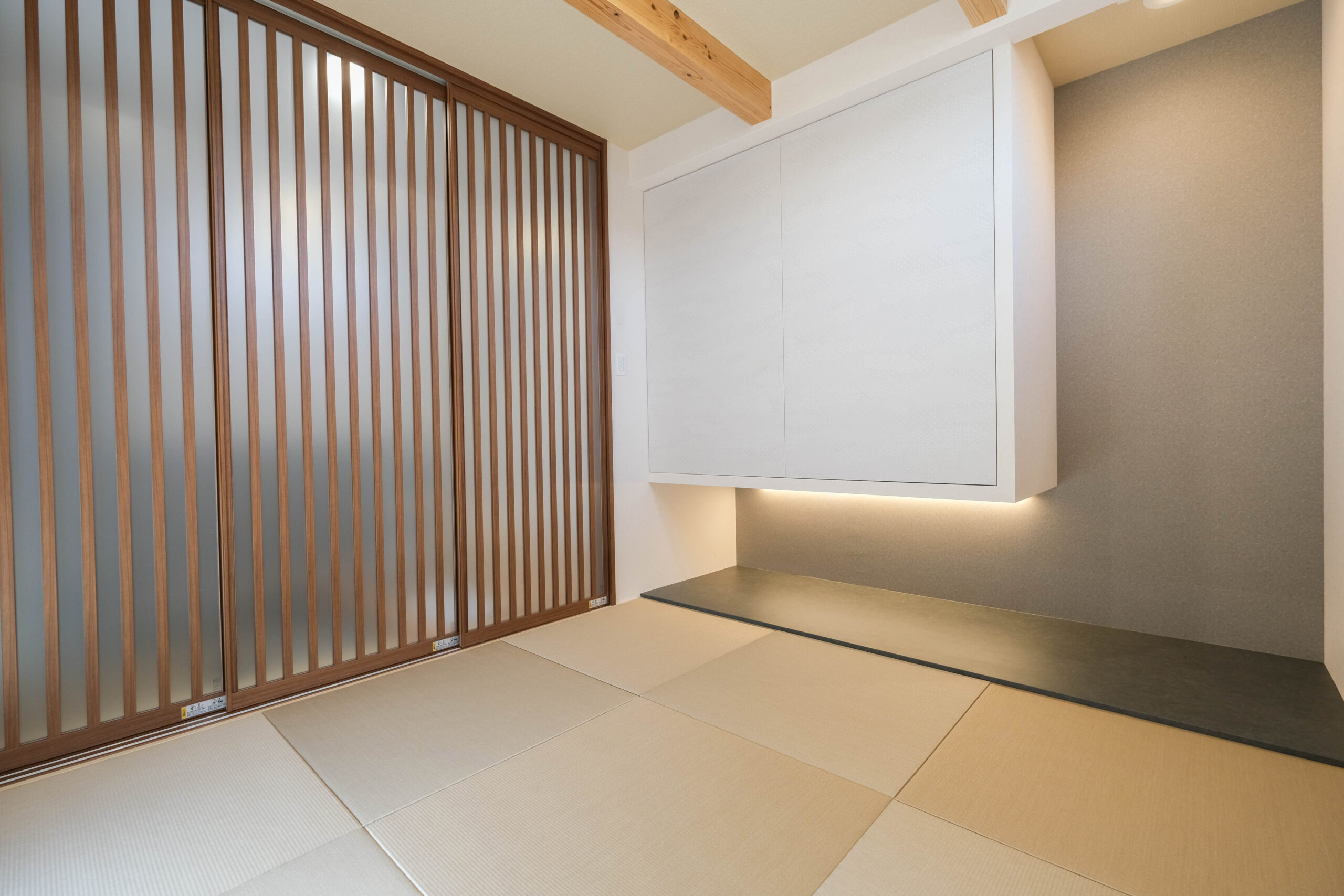 ▢来客用の和室とは別に寝室にも小上がりの畳敷きで寝転がってくつろげる空間を