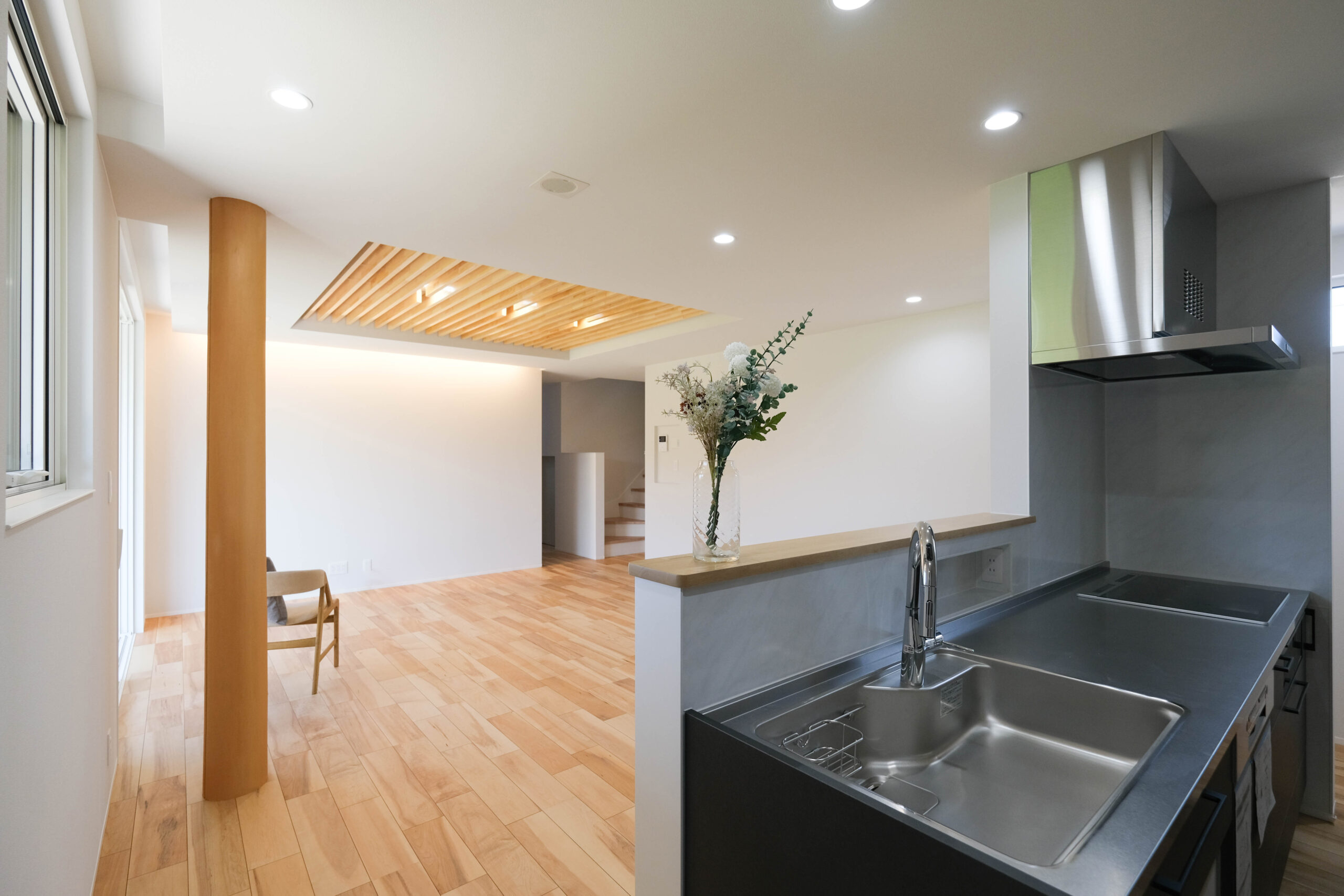 趣のある和室に、深く張り出した軒。広々とした収納付き中2階のある家