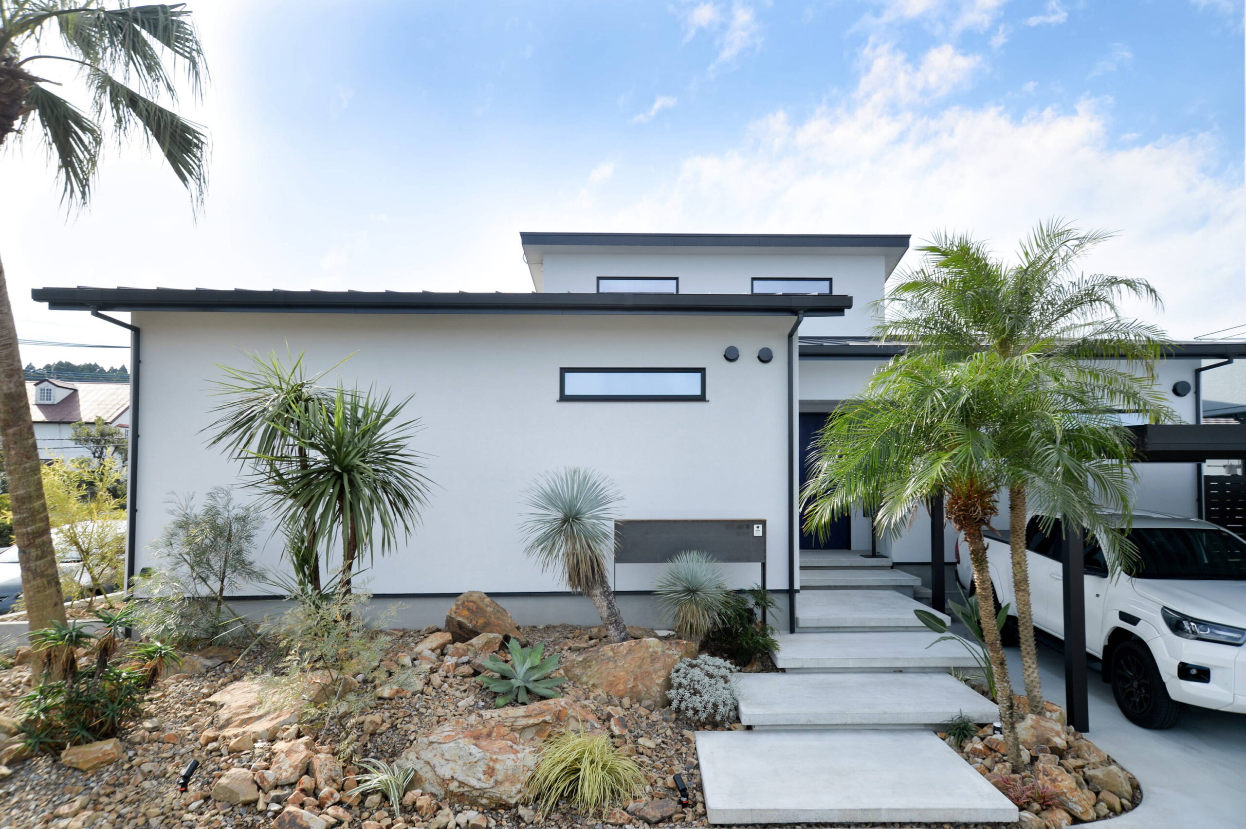 ▢白を基調にした内・外壁、塗壁