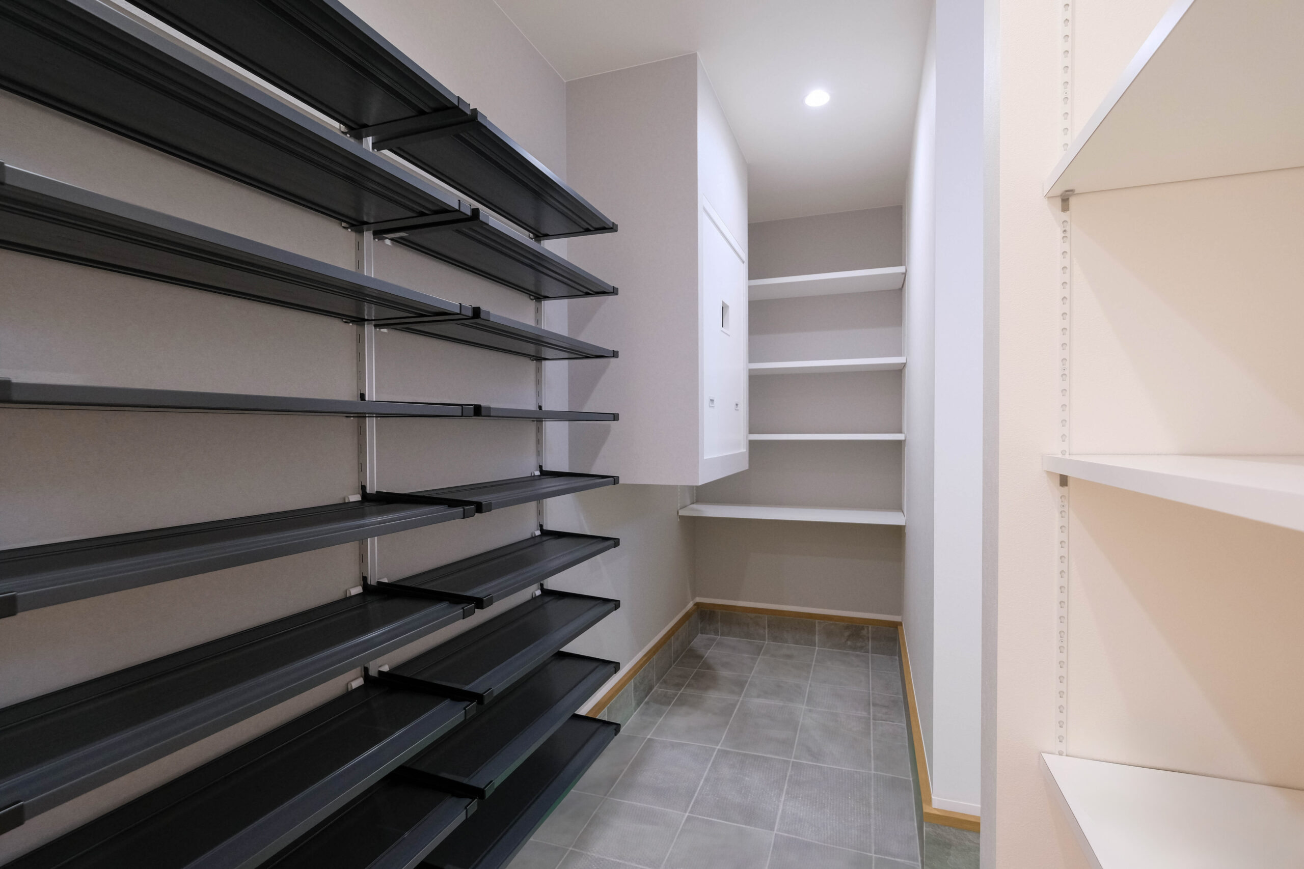 ▢家族用のもう1つの玄関はシューズクロークを通り抜けて。