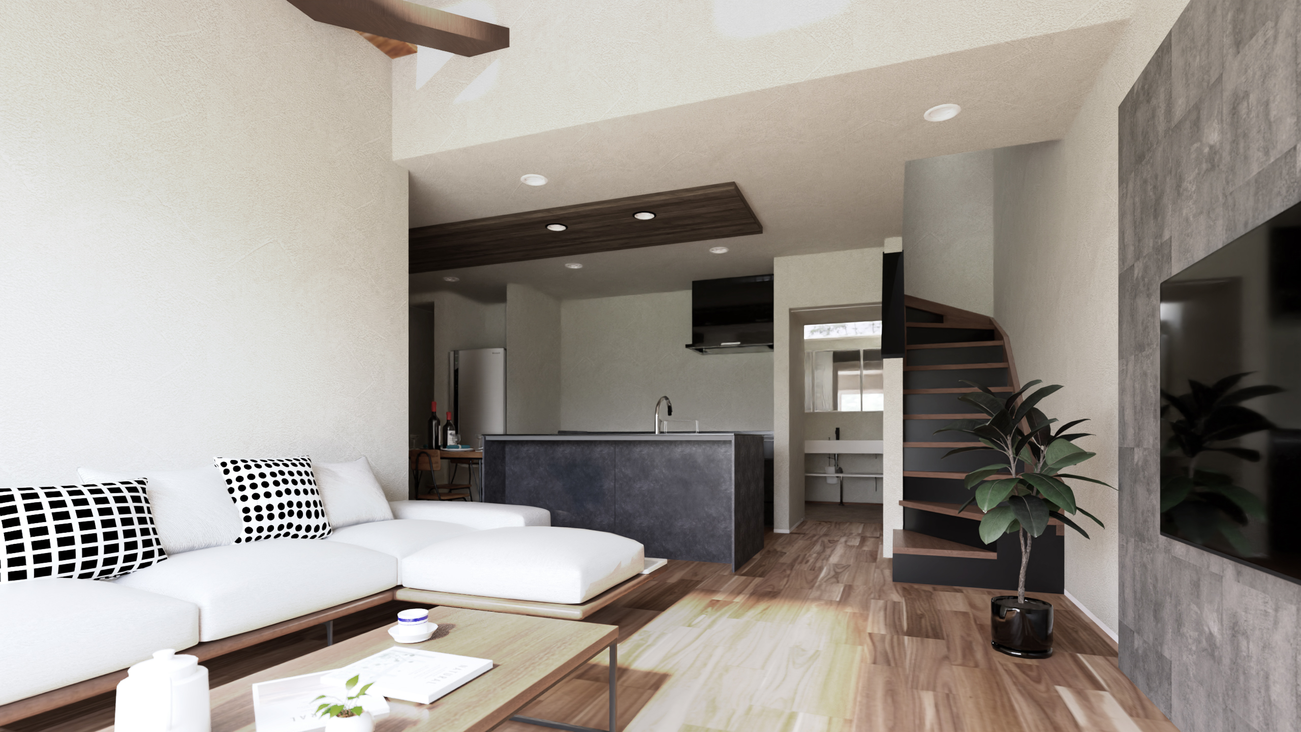 □猫ちゃんと一緒に暮らす。キャットウォークのある明るい吹き抜け